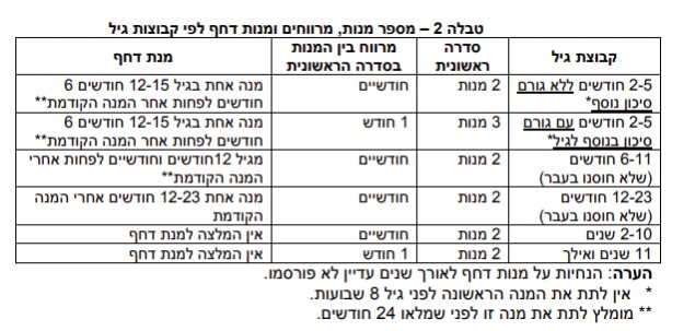 * מספר המנות והמרווח ביניהן נקבע לפי גיל מקבל החיסון: